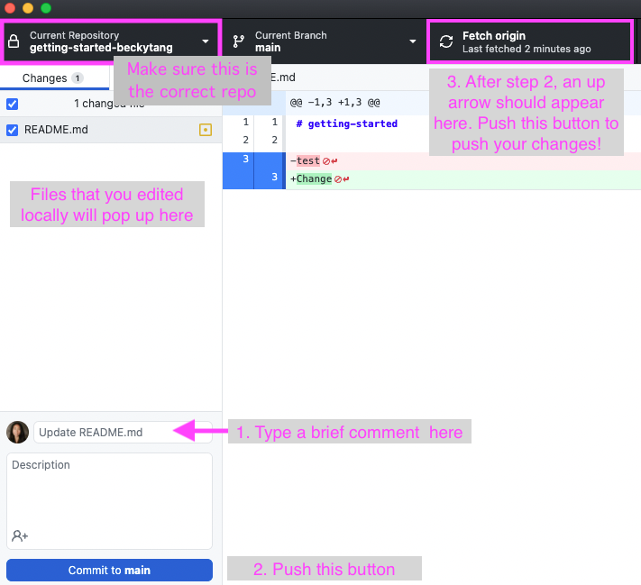 GitHub Desktop automatically does the add step for you, but you need to explicitly commit and push!