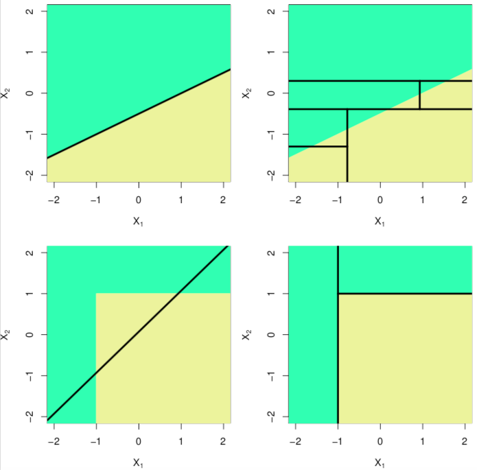Trees vs. linear models: which is better? Depends on the true relationships between the response and the predictors