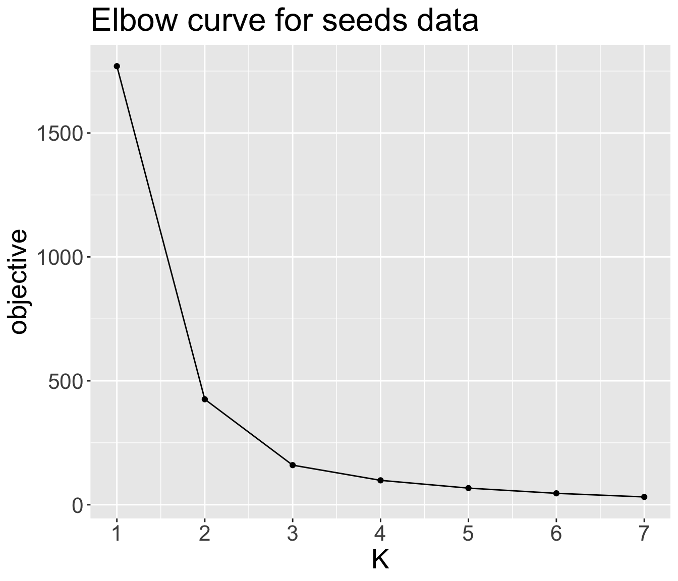 What is the optimal \(K\) for the seeds data?