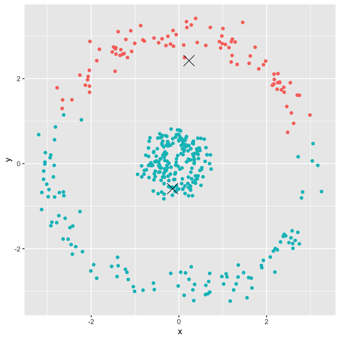 \(K\)-medoids chooses one of the observation points to be the center