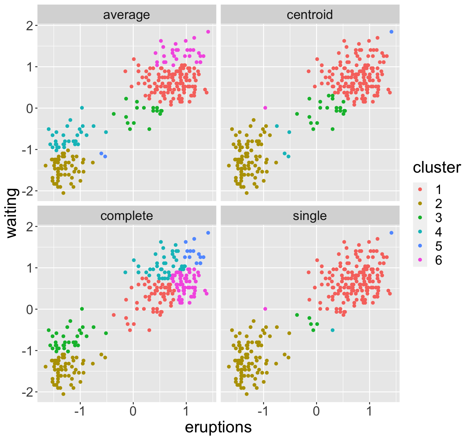 In each case, performed clustering and then cut to obtain six groups