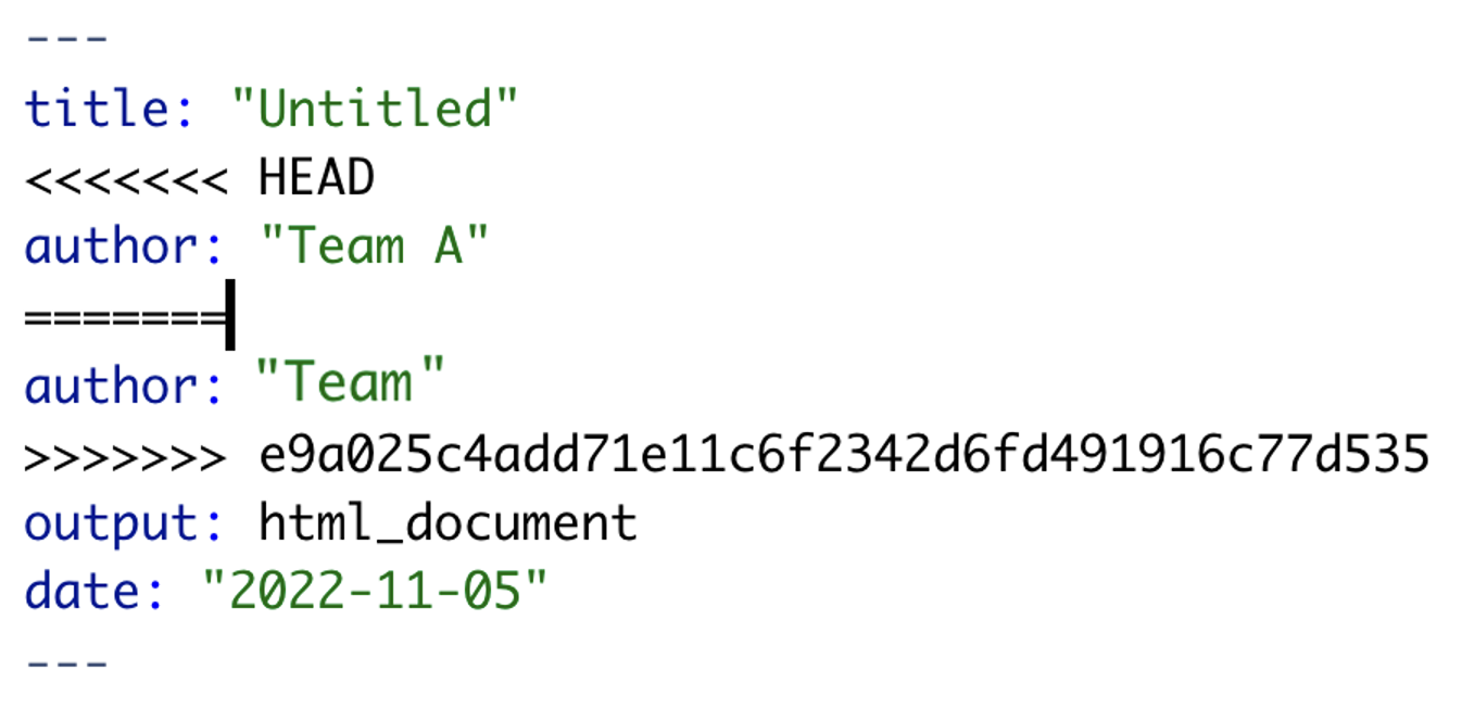 Each team member can create their own R Markdown document that only they work in. That way, those individual/personal documents shouldn’t have merge conflicts. Then when it becomes necessary, you can work in and add to the entire group’s .Rmd file.